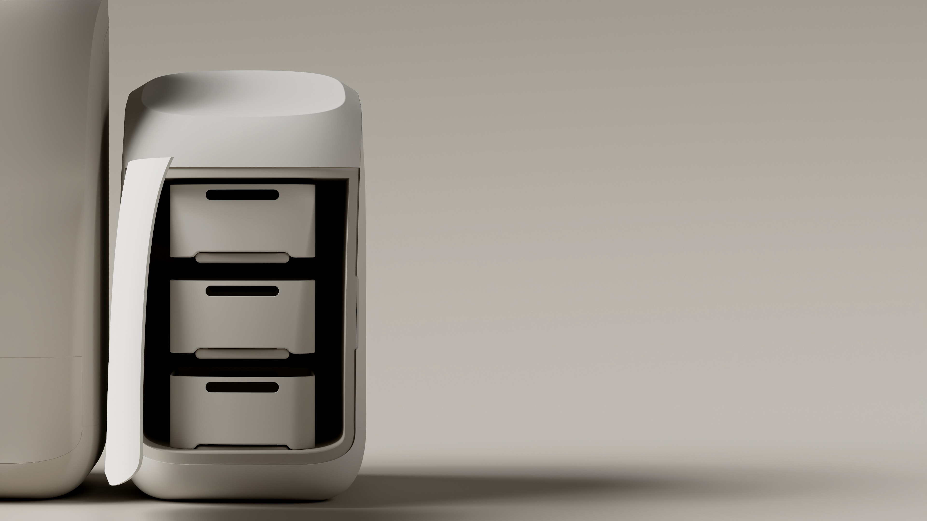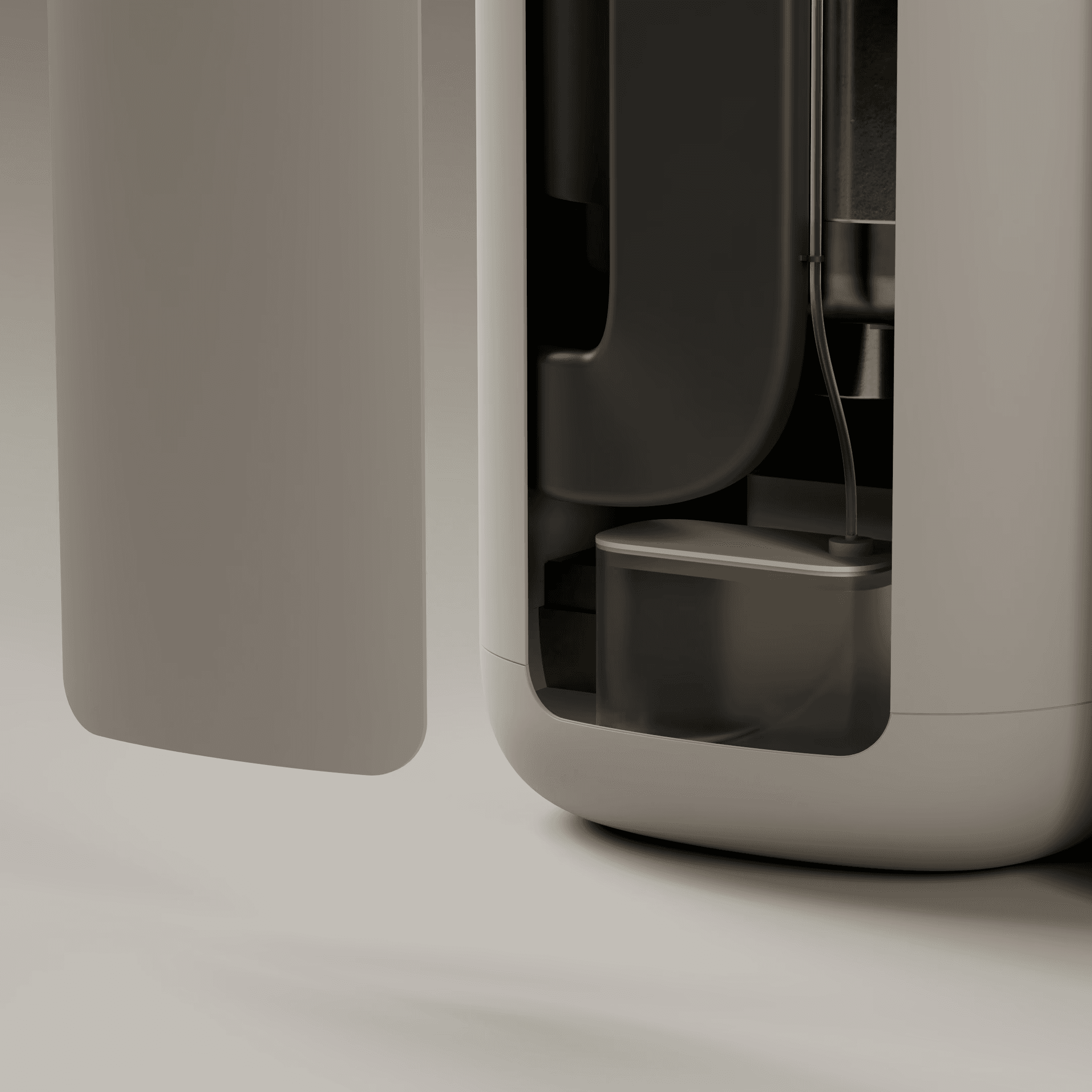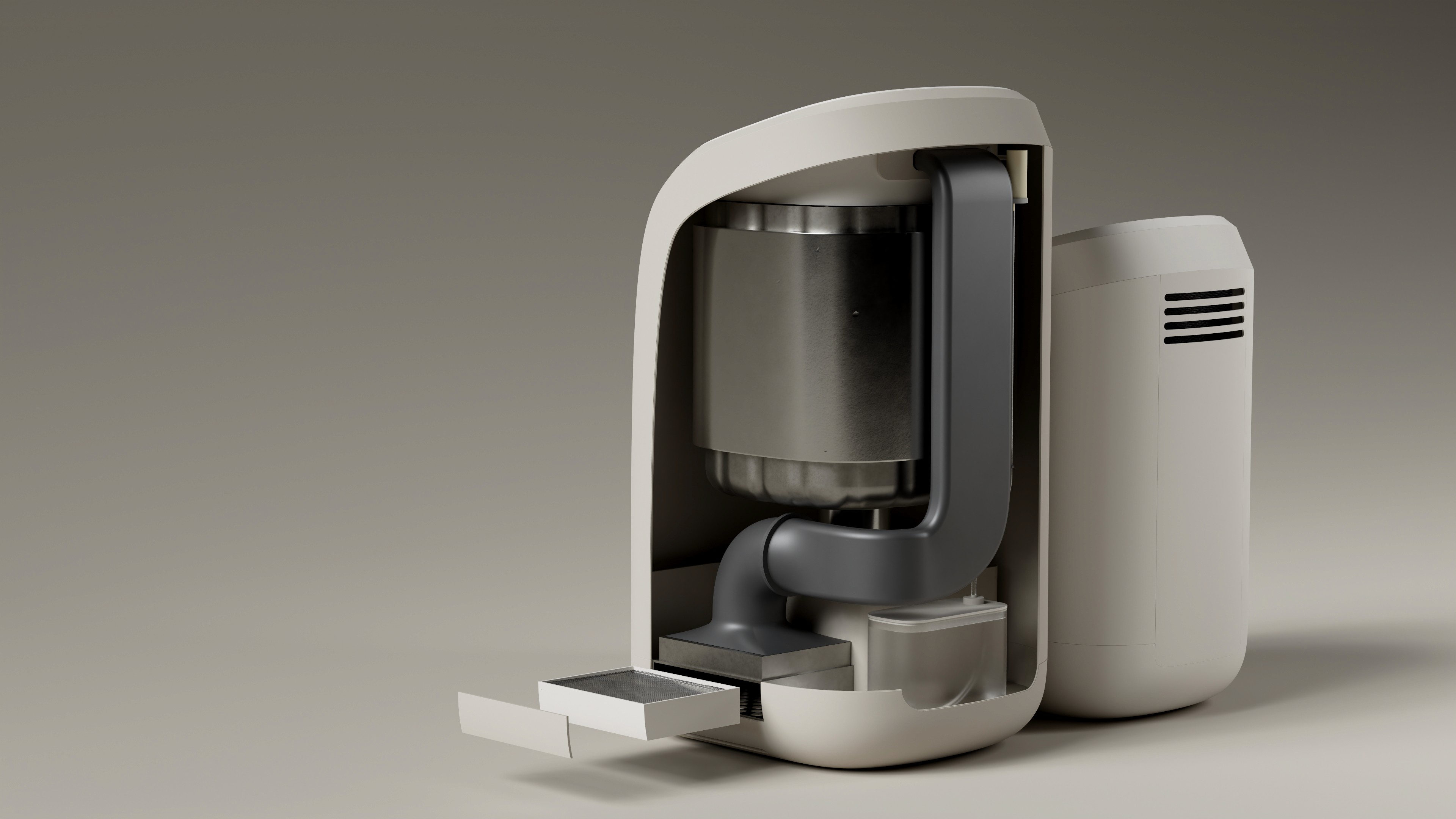 Koru is a two-unit composting system that completes the full composting lifecycle, from food scraps to finished compost, through guided processing and controlled curing.