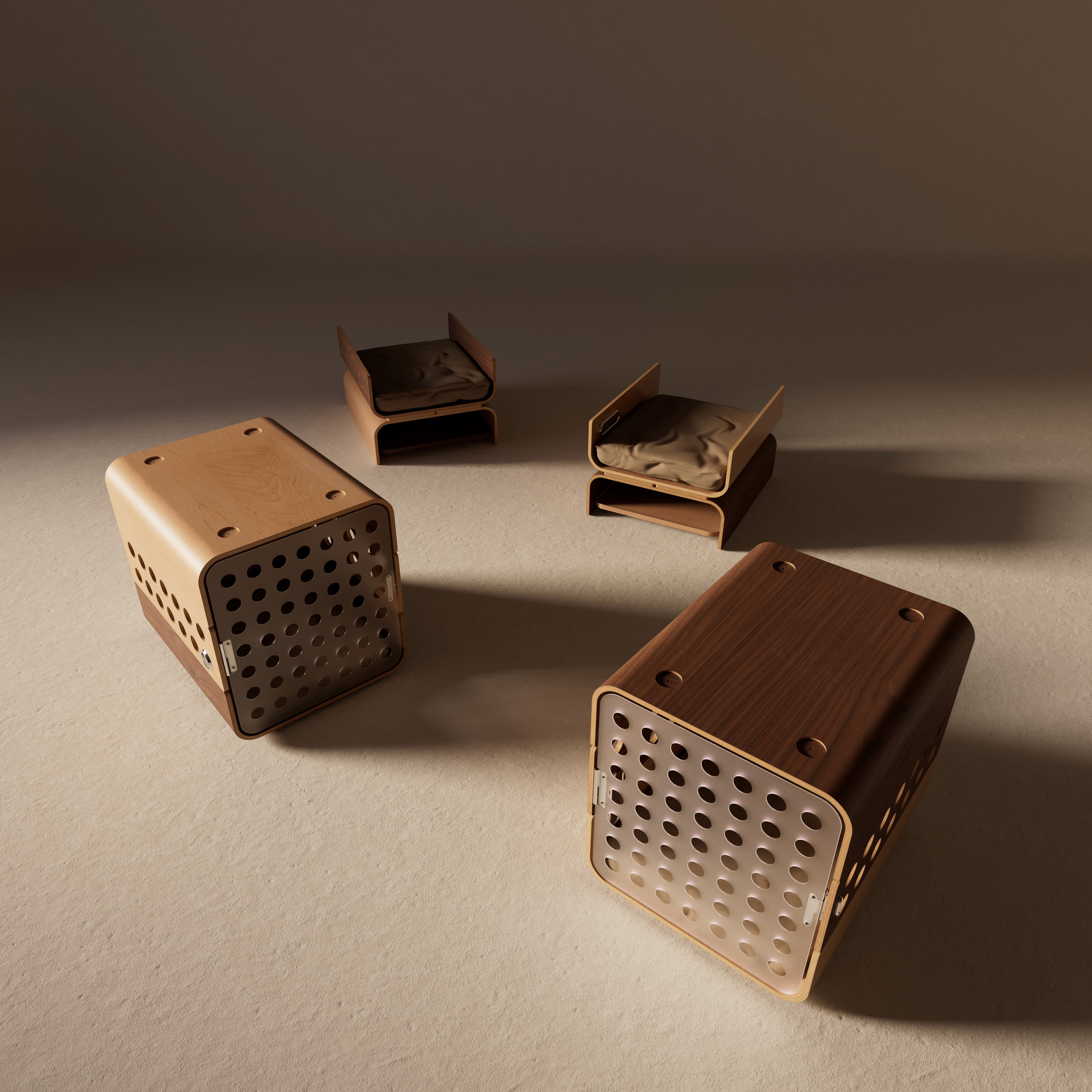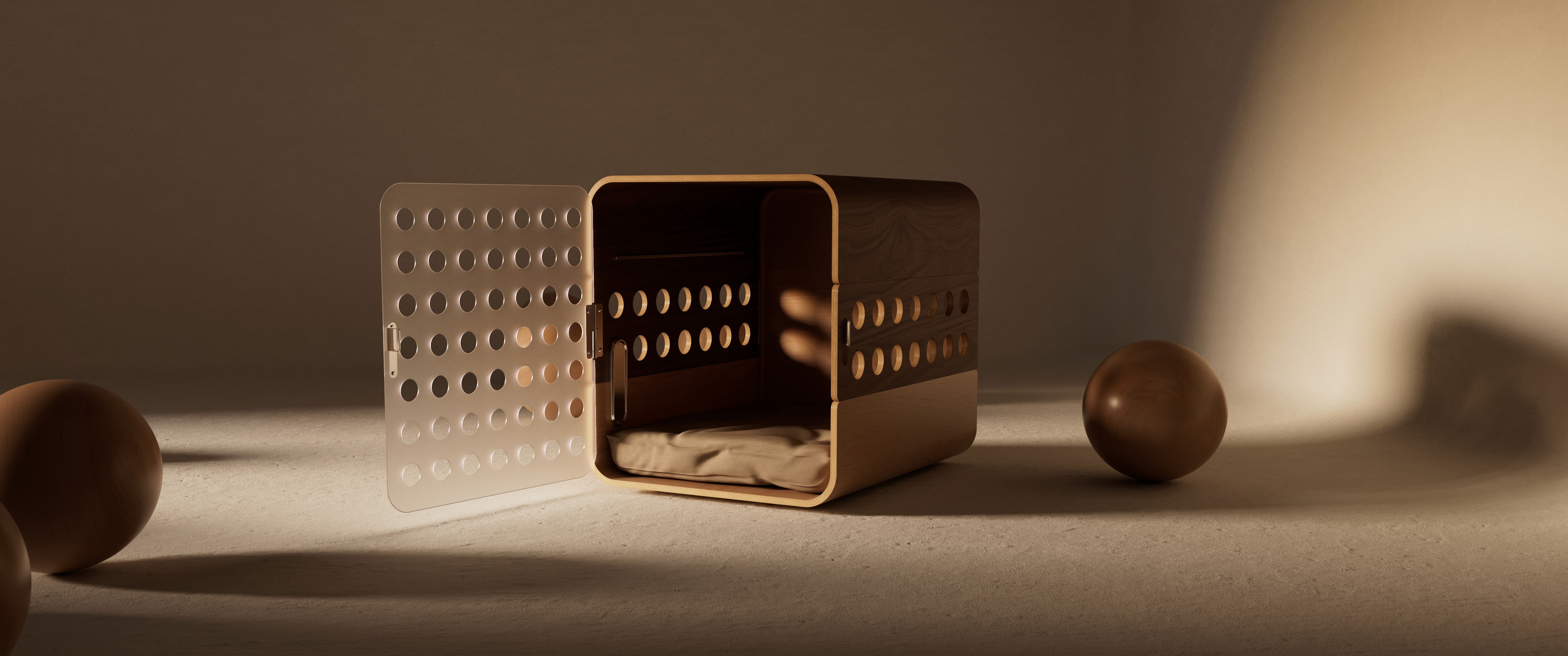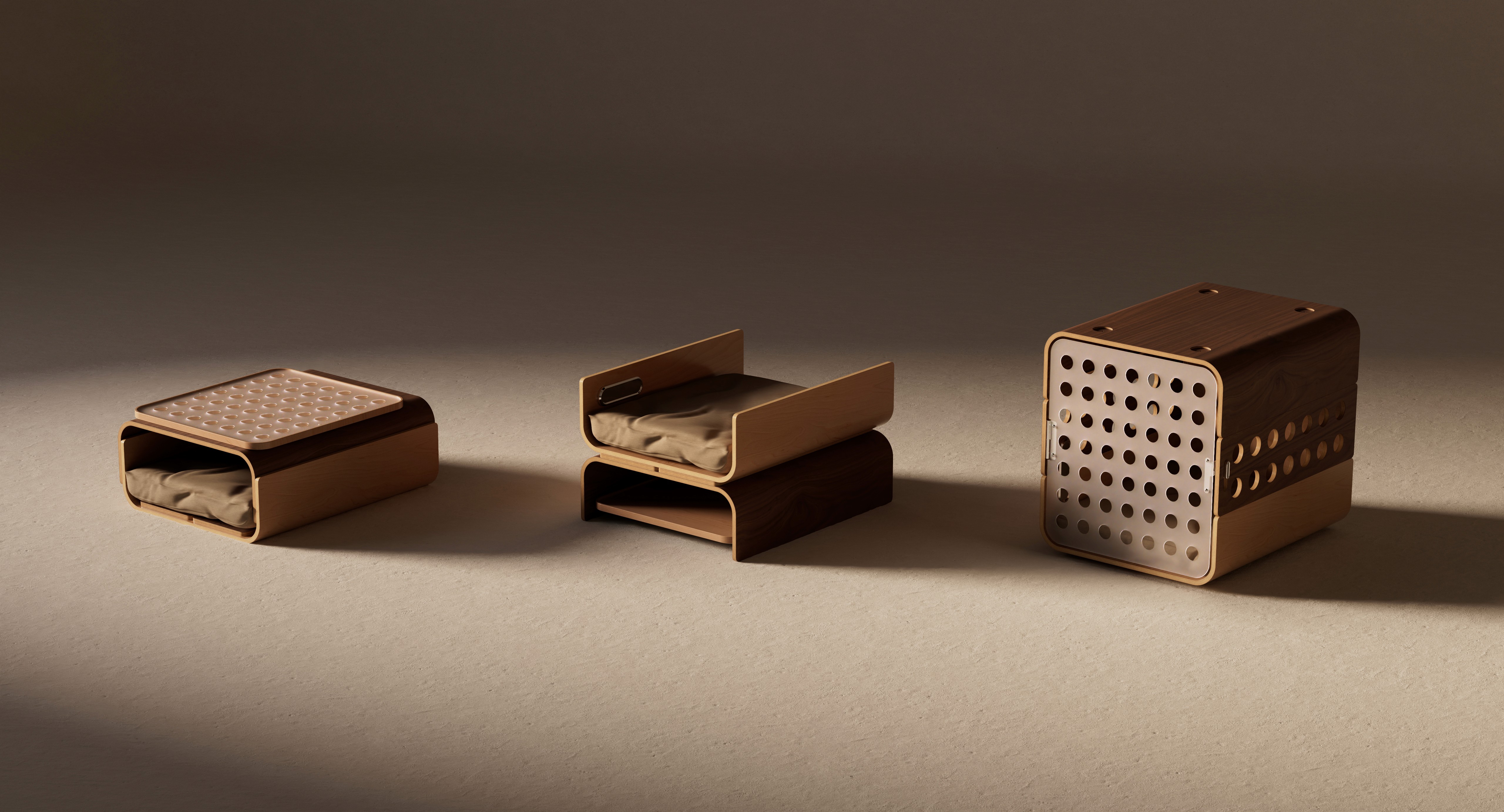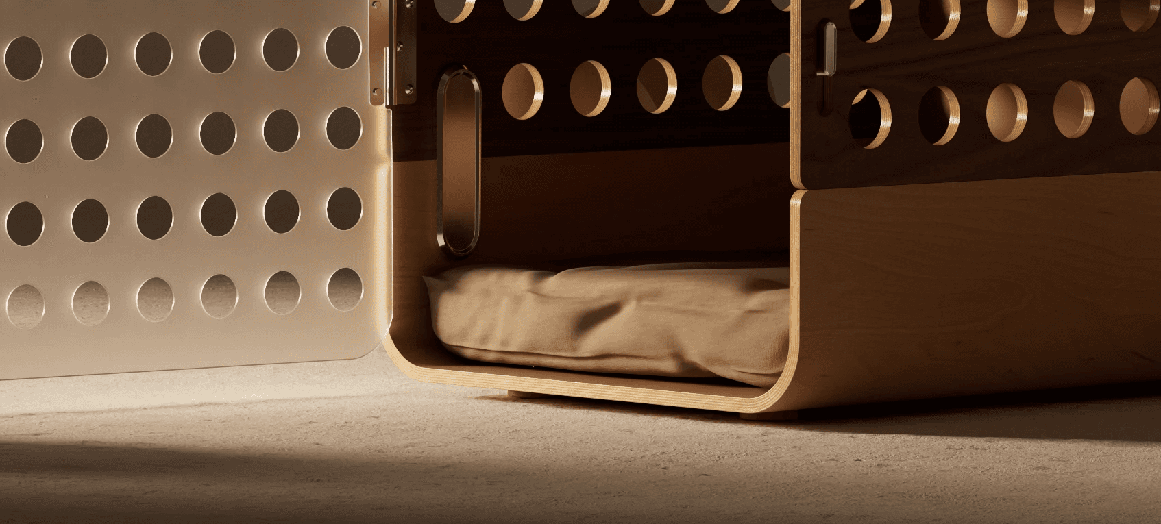 Crate to Nest is a containment solution that reimagines a familiar object for both the training phase and life beyond it. Designed to transition from a secure crate into an inviting bed, it repurposes most of its components in the process, allowing it to evolve with both the space and dog’s needs.