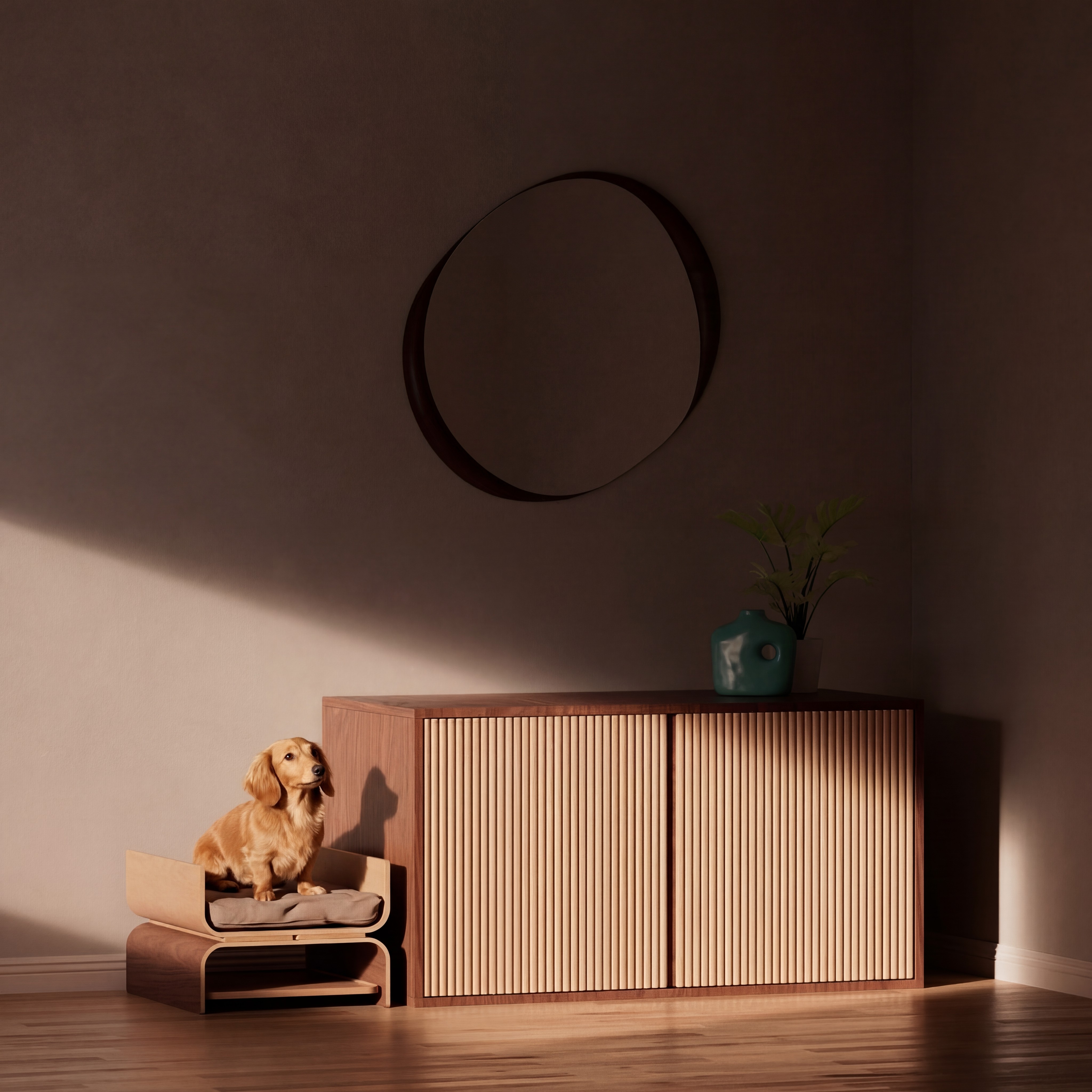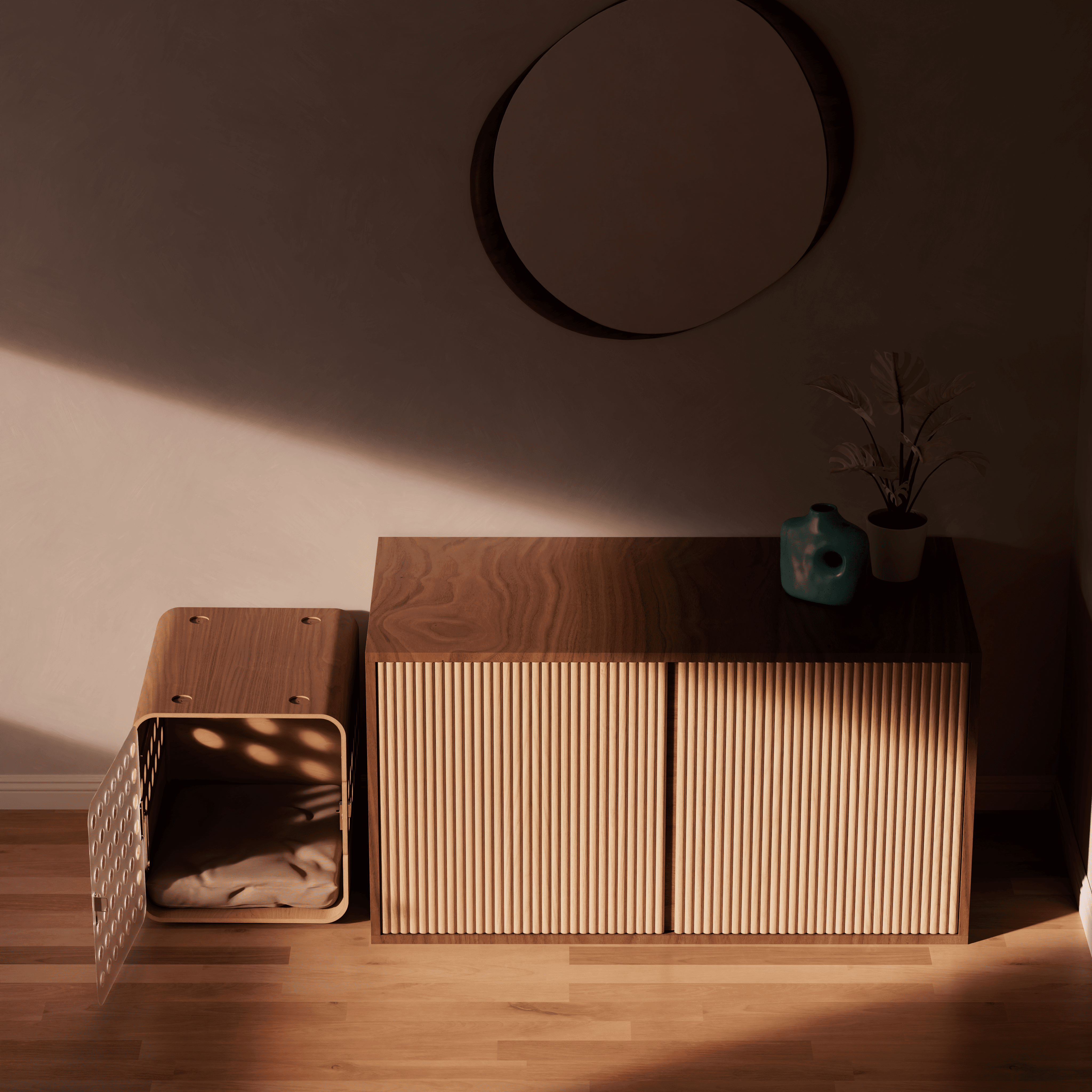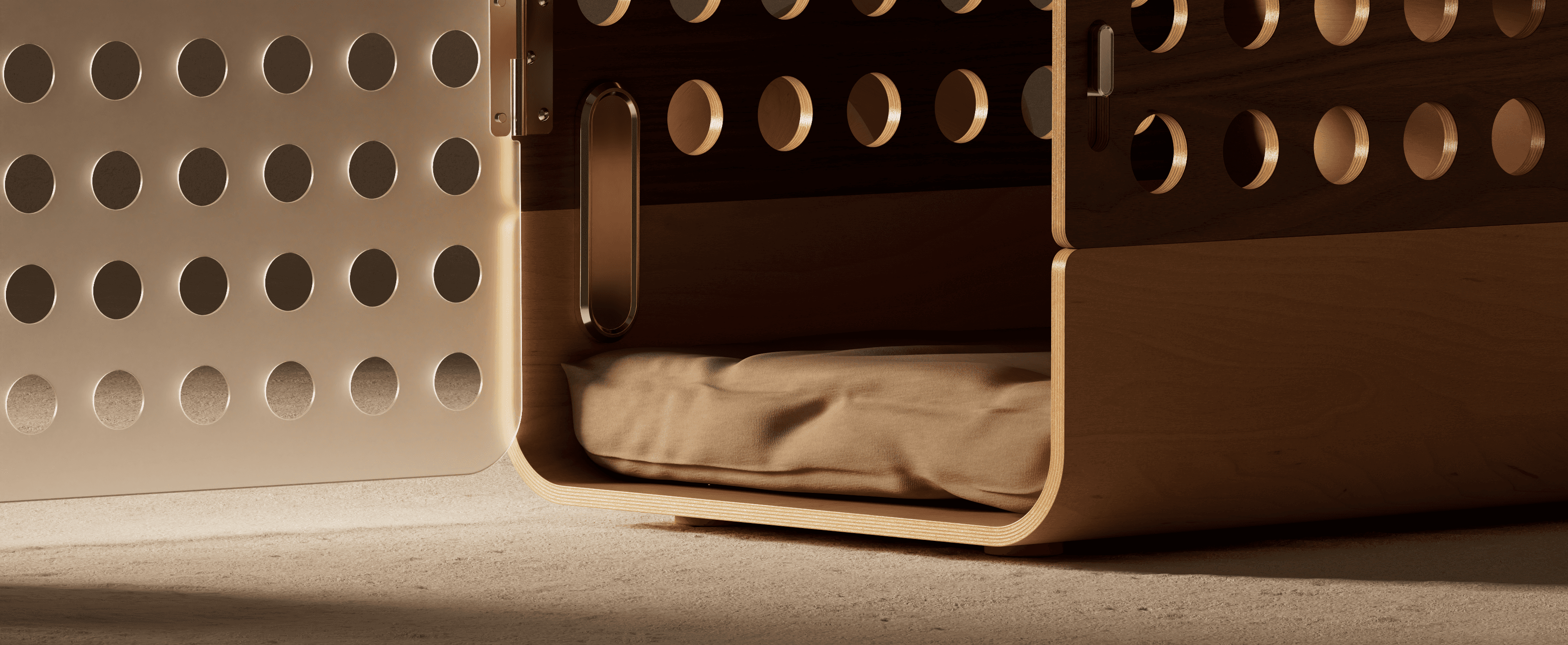 Designed to convert from a secure crate into an inviting bed, Crate to Nest repurposes most of its components in the process, allowing it to evolve with both the space and dog’s needs.